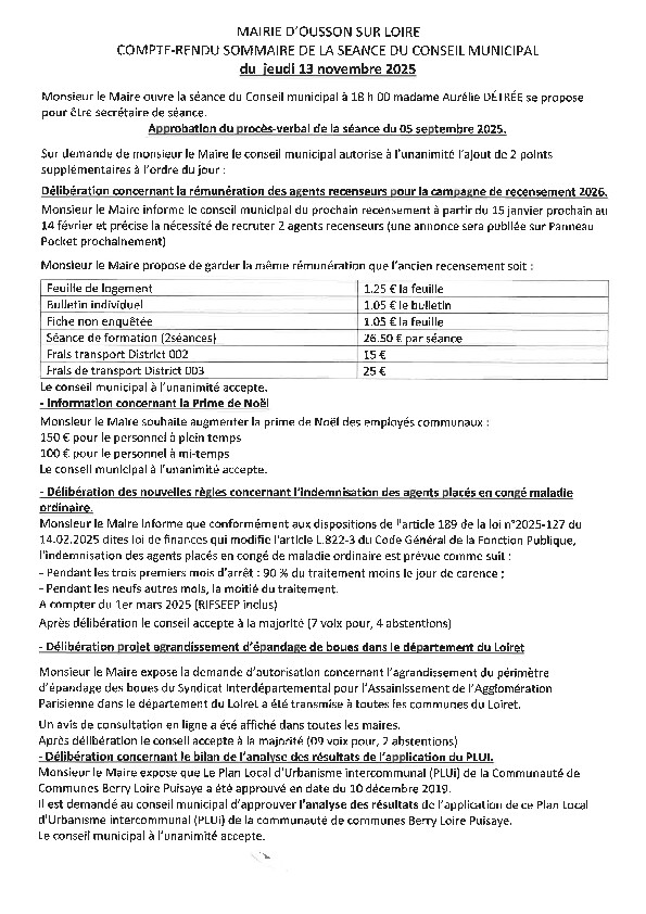 Dans le cadre des opérations de recensement qui se dérouleront du 15 janvier au 14 février 2026, la commune d'Ousson-sur-Loire recrute deux agents recenseurs.