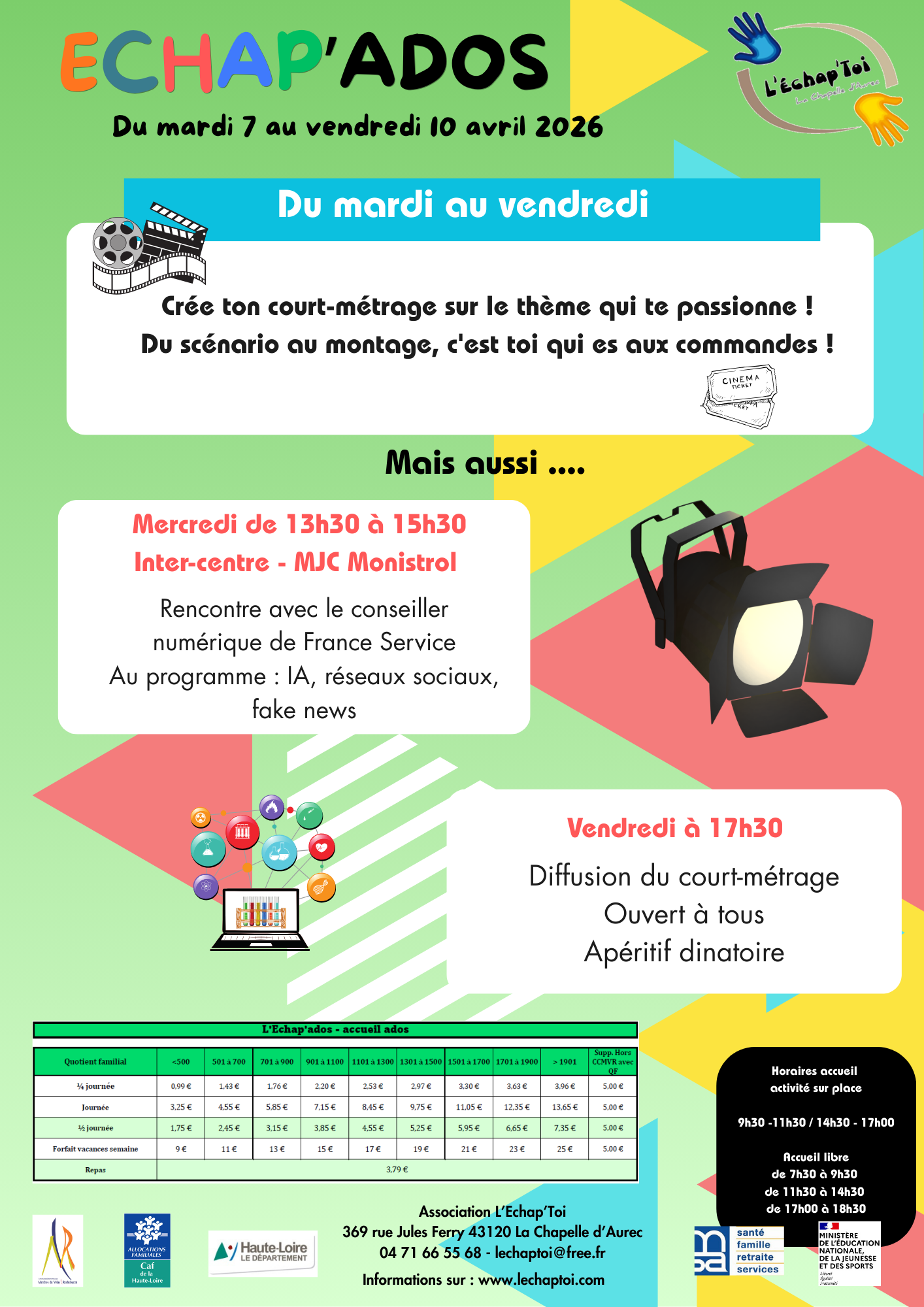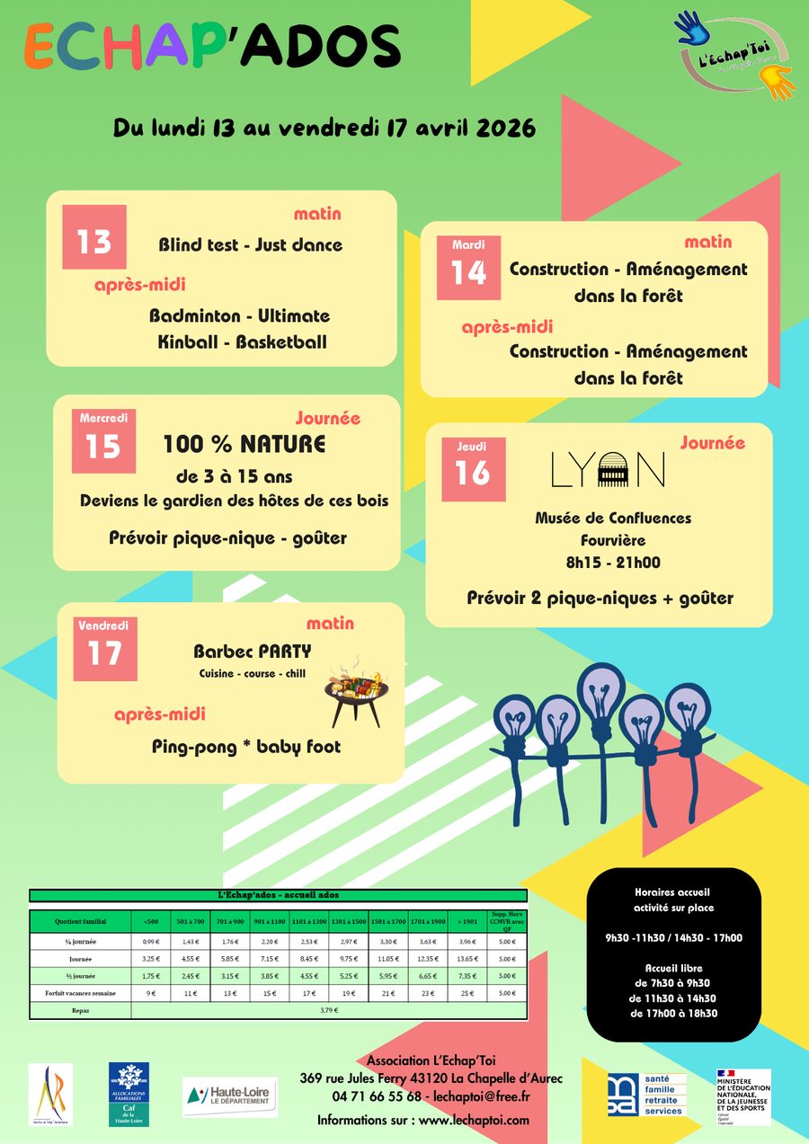 - Des ateliers et visites originales chez nos sites partenaires : château de Rochebaron à Bas-en-Basset, Saint-Pal-de-Chalencon, petite cité de caractère, centre aquatique l’Ozen.
