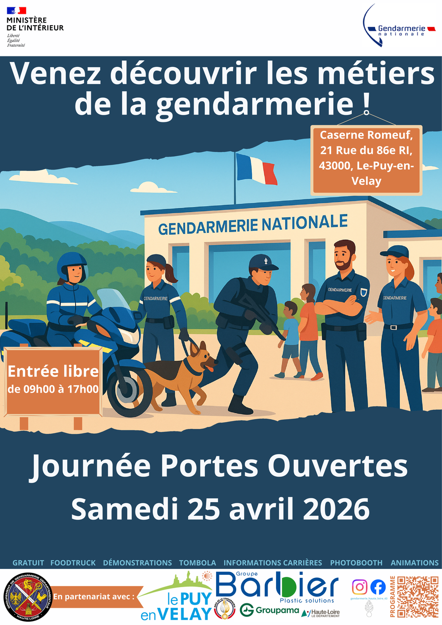 Le Groupement de Gendarmerie Départementale de la Haute-Loire organise une journée portes ouvertes le :