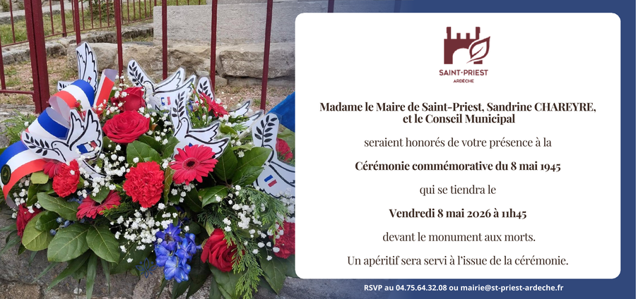 Tous les habitants sont chaleureusement invités à participer à ce moment de mémoire et de recueillement qui se clôturera par le verre de l'amitié en mairie.