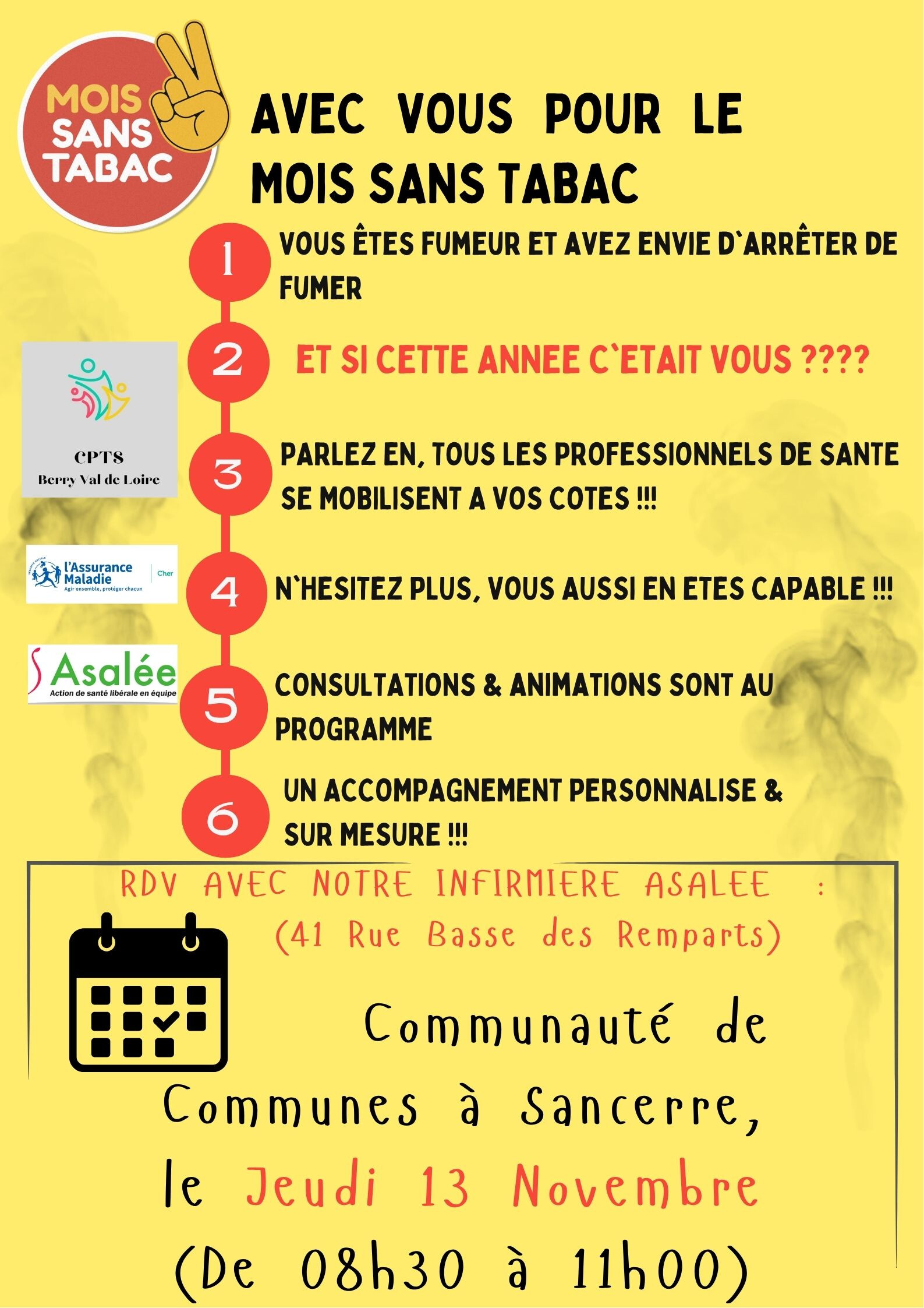 le mois de Novembre est chaque année, dédié à la prévention pour le Tabac : "Mois sans Tabac".