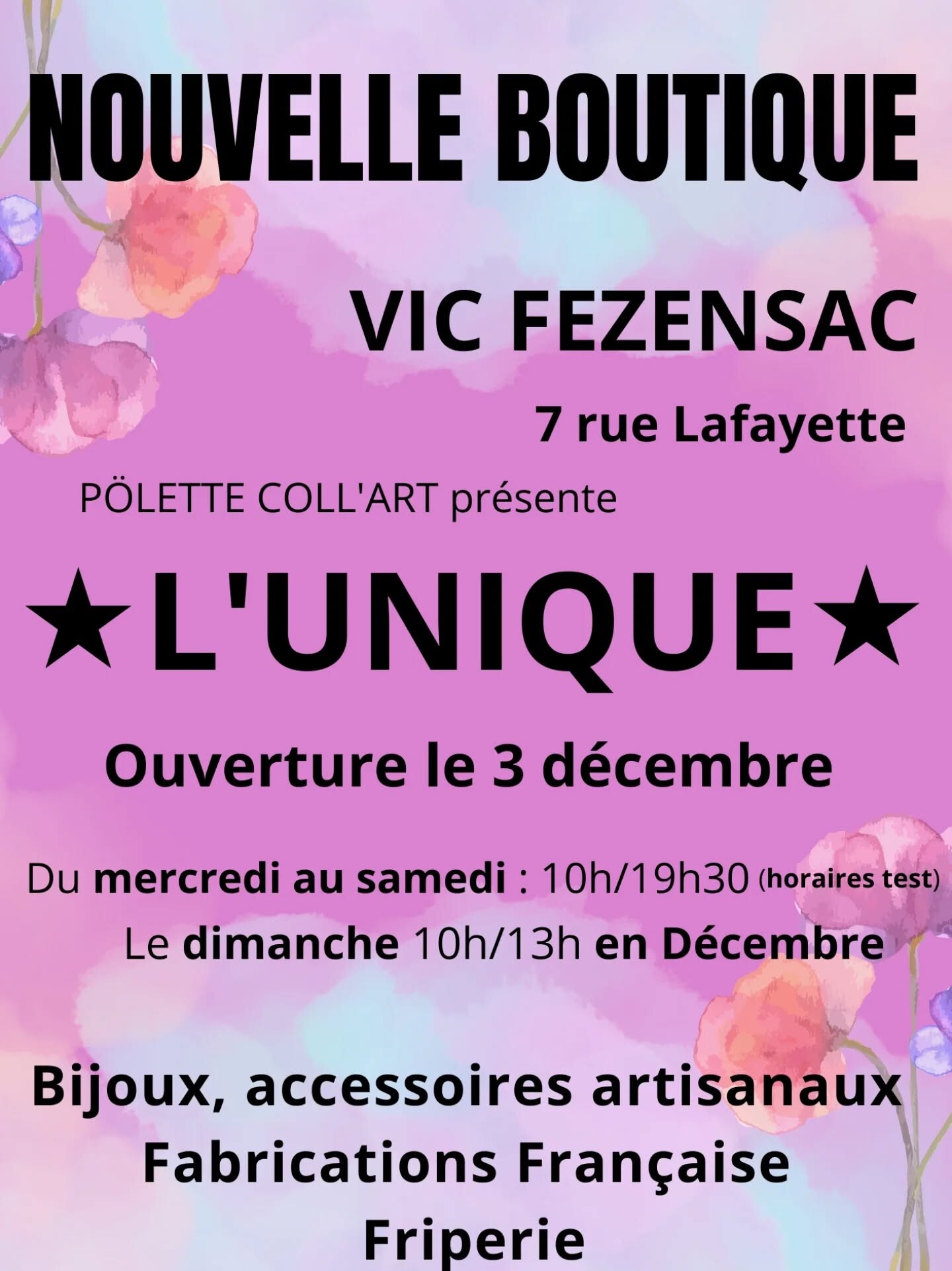 👜 Tenez-vous prêts à venir découvrir “𝗟’𝗨𝗡𝗜𝗤𝗨𝗘”, votre nouvelle boutique située 7 rue Lafayette qui ouvrira ses portes à partir du 3 décembre 2025 à Vic-Fezensac