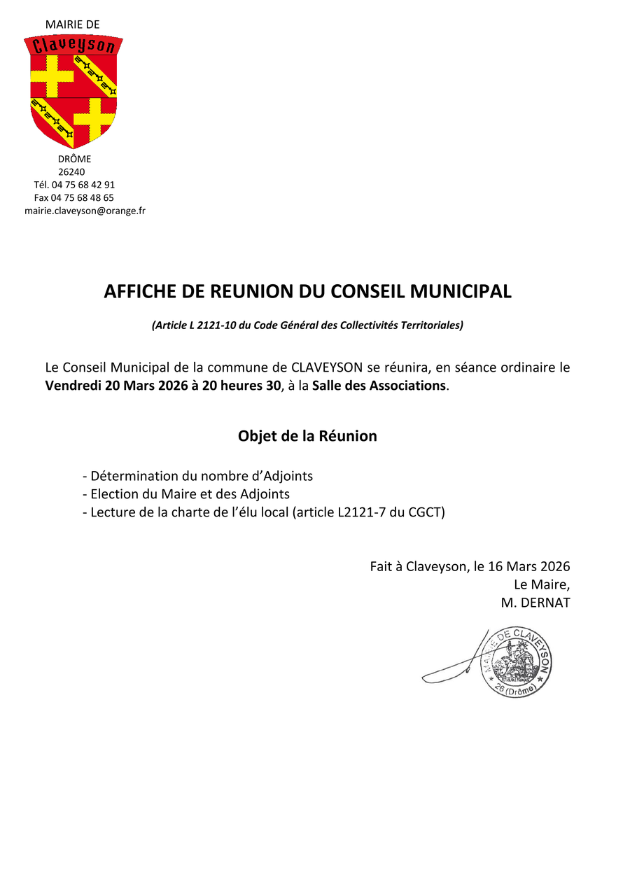 Ci Dessous l'affiche de Réunion du 1er Conseil Municipale portant sur: