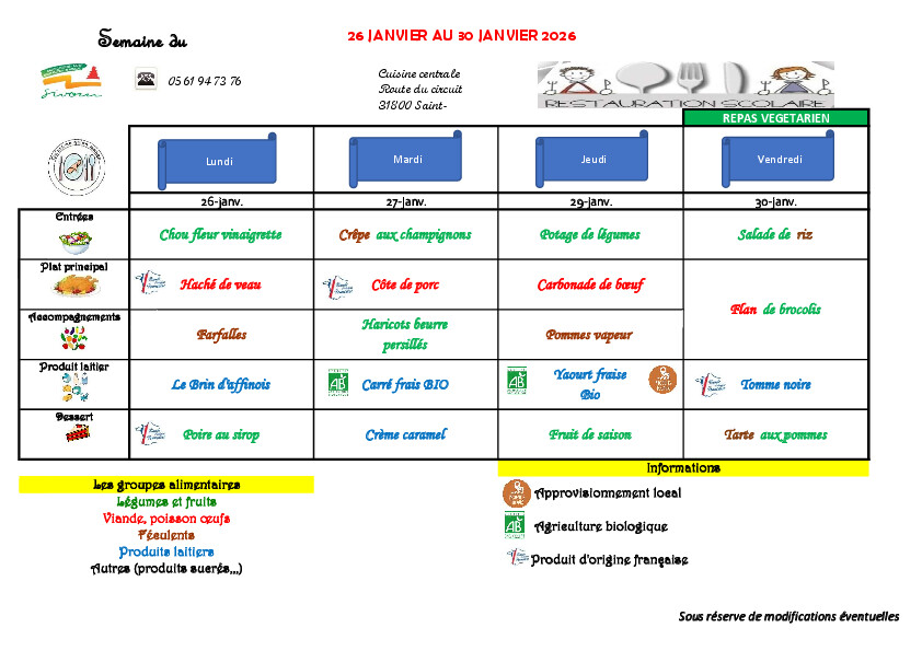 Retrouvez les menus ici