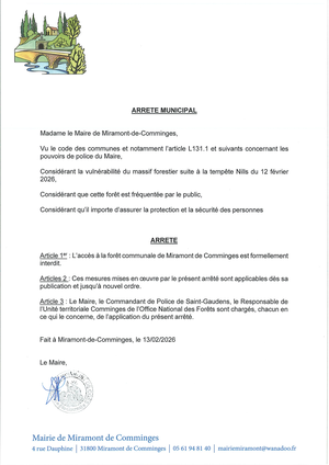 Suite à la tempête Nils, l'accès à la forêt communale de Miramont de Comminges est formellement interdit.