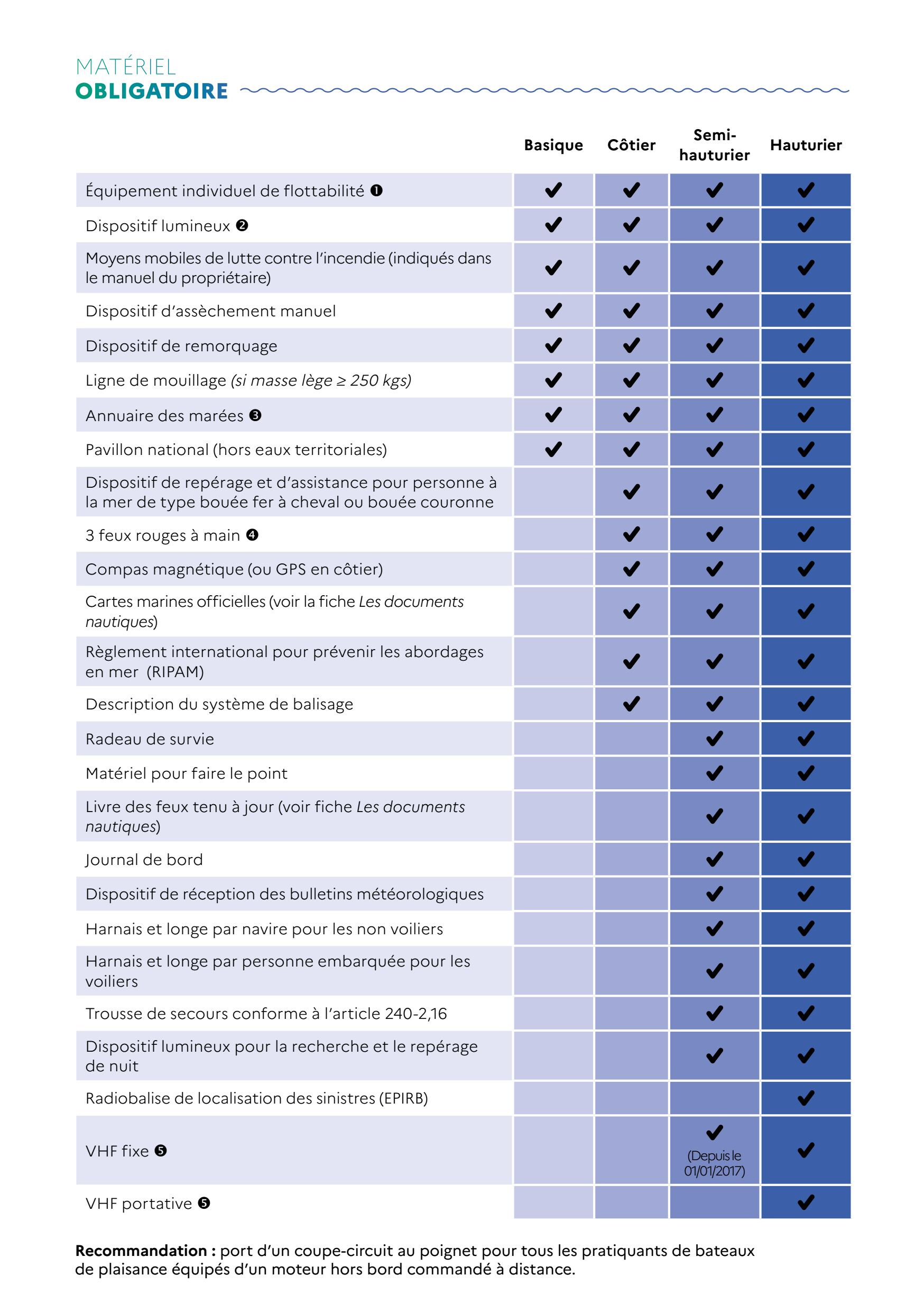 Un matériel de sécurité adapté à la navigation pratiquée