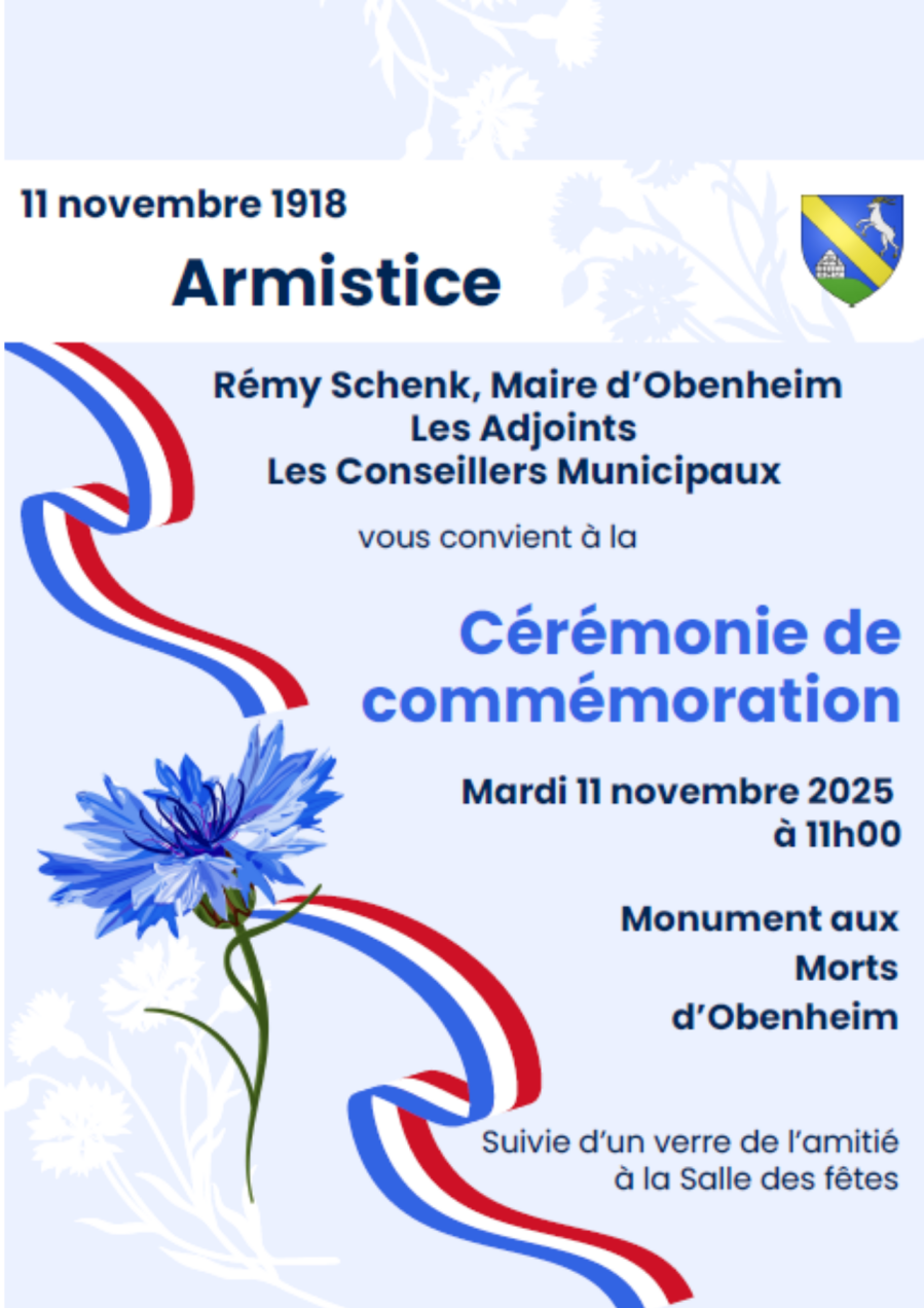 La population est invitée à participer à la cérémonie commémorative du 11 novembre afin de rendre hommage à celles et ceux qui ont donné leur vie lors des derniers conflits.