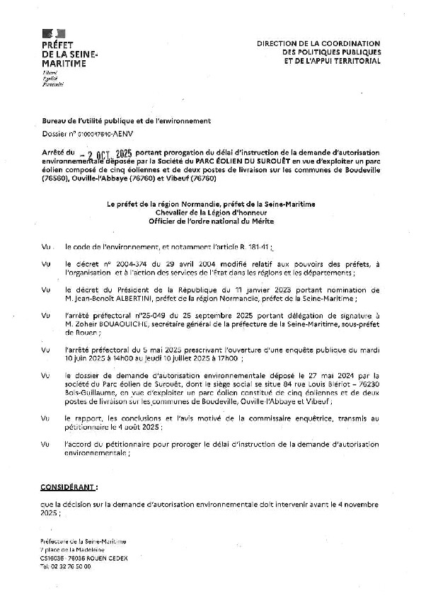 Prorogation du délai d'instruction