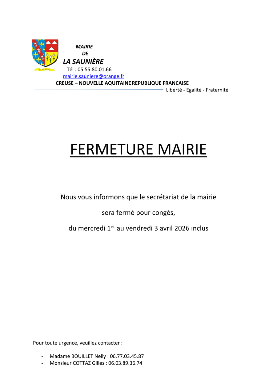 💬 Pour plus d’informations et pour connaître les modalités d’acquisition, contactez la mairie au 05 55 80 01 66 ou par mail à mairie.sauniere@orange.fr ou Mme Le Maire au 06 34 55 80 36