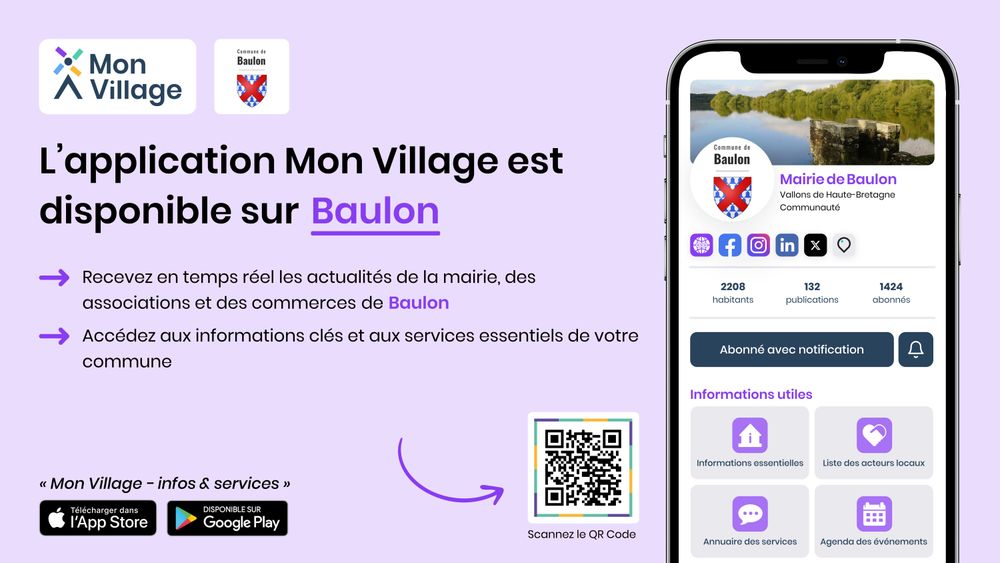 ℹ️ Pour continuer de suivre l'actualité de la mairie, des associations et des commerces, téléchargez gratuitement l'application Mon Village via le QR code disponible sur l'affiche ci-dessous.