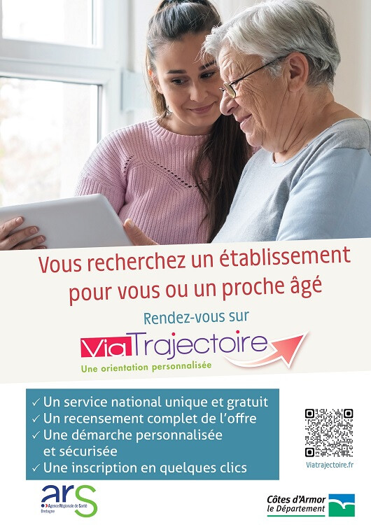 Le site web Viatrajectoire est un service gratuit et sécurisé qui permet aux personnes âgées ou à leurs aidants de rechercher en ligne un établissement (EHPAD, résidence autonomie, unité de soins de longue durée, accueil de jour...) conforme à leurs critères géographiques, financiers et médicaux,