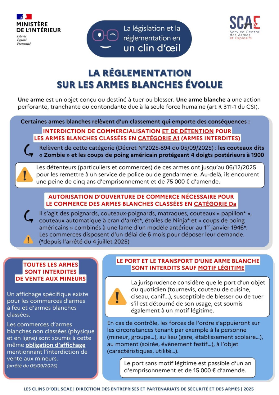 Les poignards, couteaux "papillon", couteaux automatiques et étoiles de jet sont désormais classés en catégorie D ;