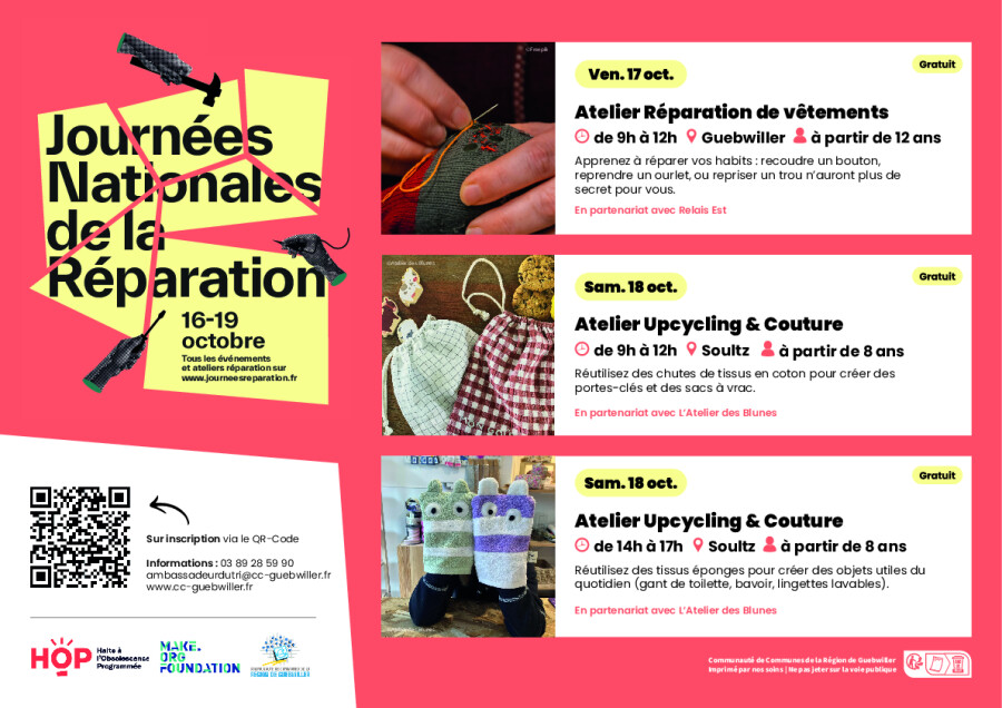La Communauté de Communes de la Région de Guebwiller et ses partenaires lancent des animations dans le cadre des Journées Nationales de la Réparation, qui se dérouleront du
