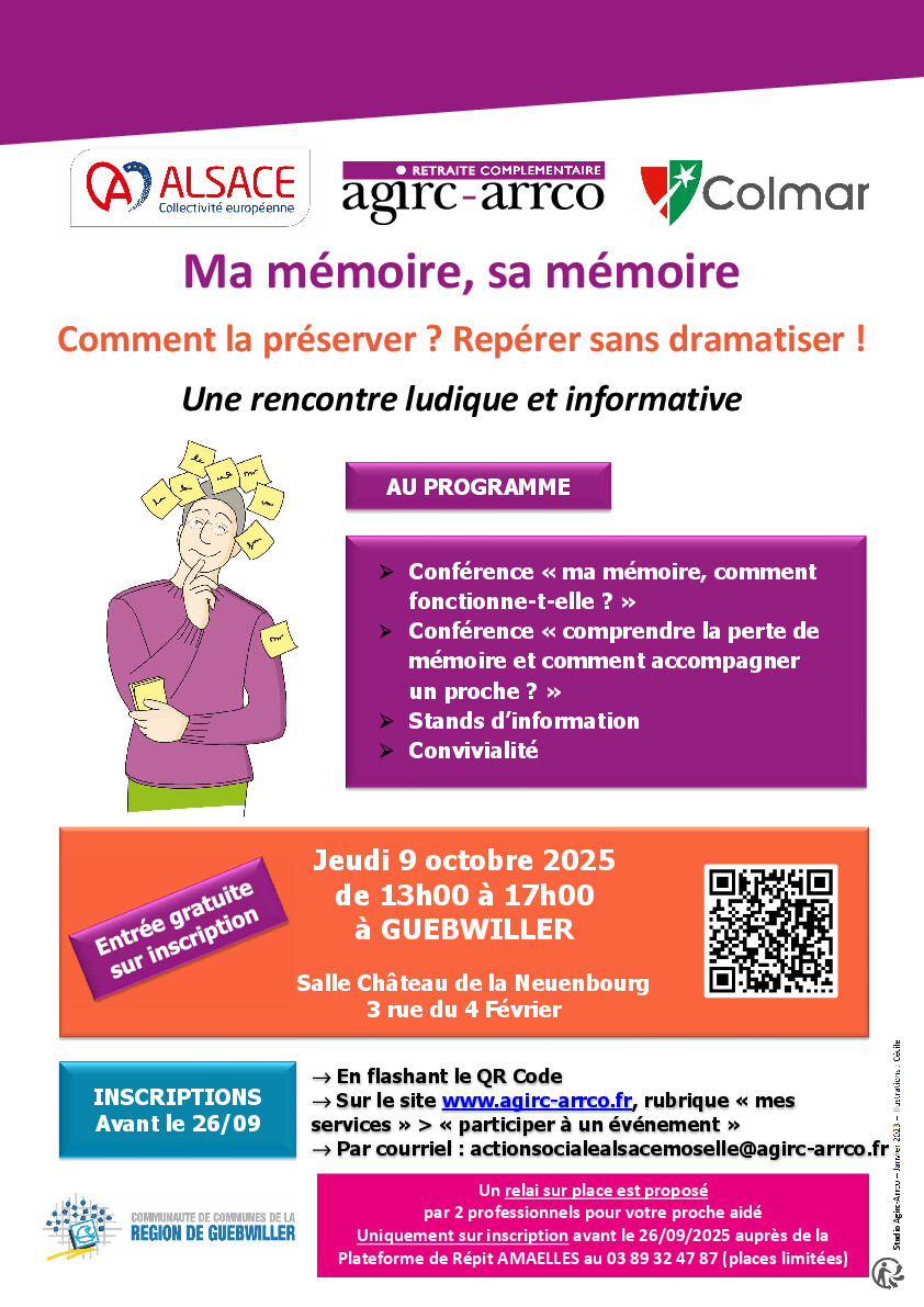 Une rencontre sur le thème de la mémoire se tiendra le jeudi 9 octobre 2025 de 13h00 à 17h00, à la salle Château de la Neuenbourg, Guebwiller.