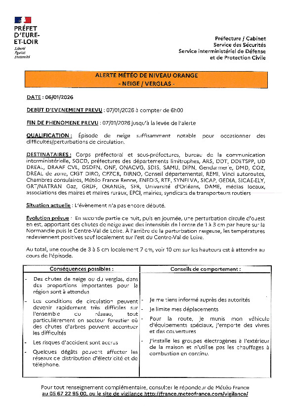 Compte tenu des conditions météorologiques sur le Département d’Eure-et-Loir, nettement plus défavorables que les prévisions, il est décidé de :