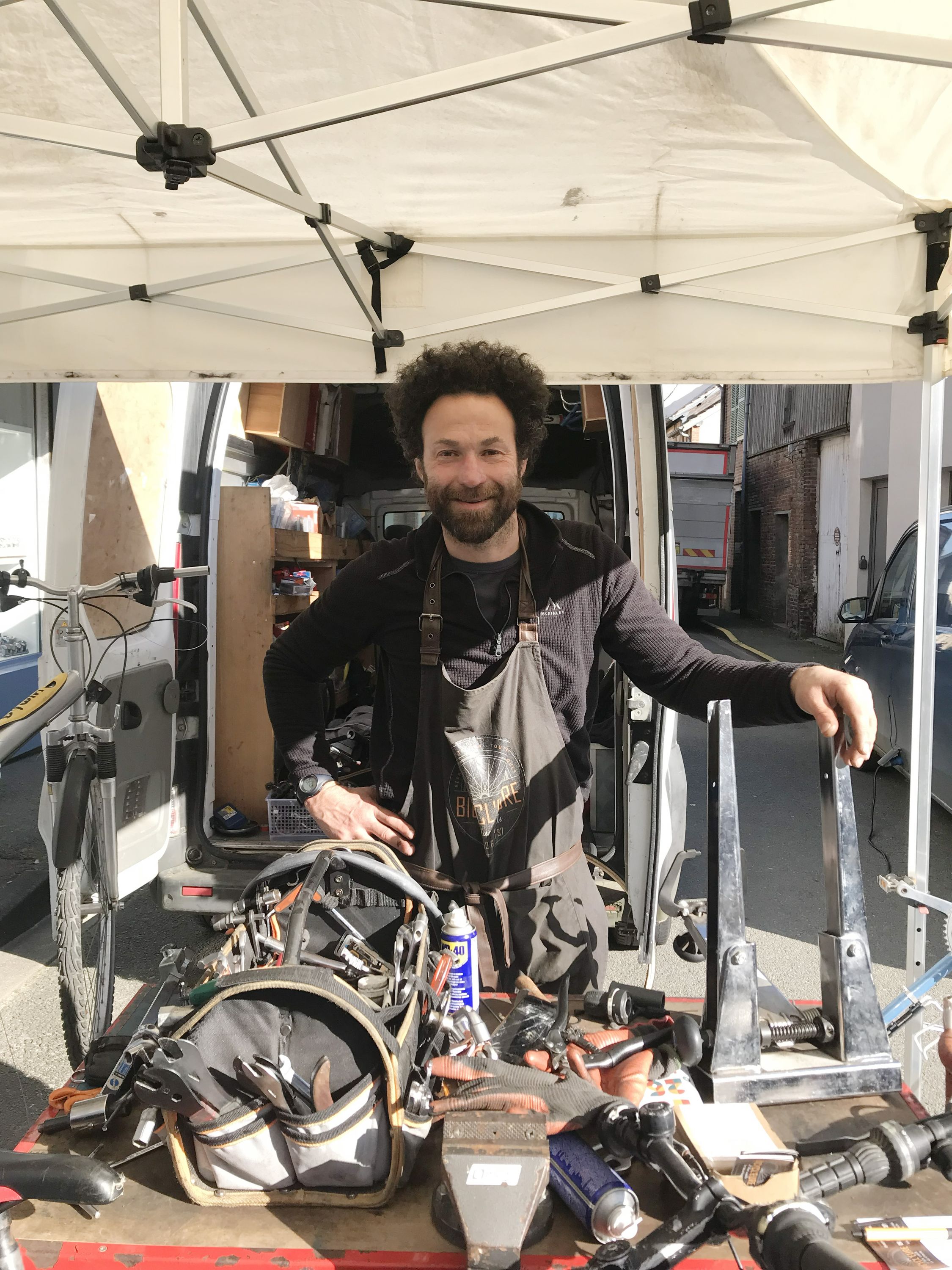 Présent sur le marché tous les mardis matin, ce technicien «pro du cycle» reçoit à son atelier du Val d’Hazey et se déplace à domicile.