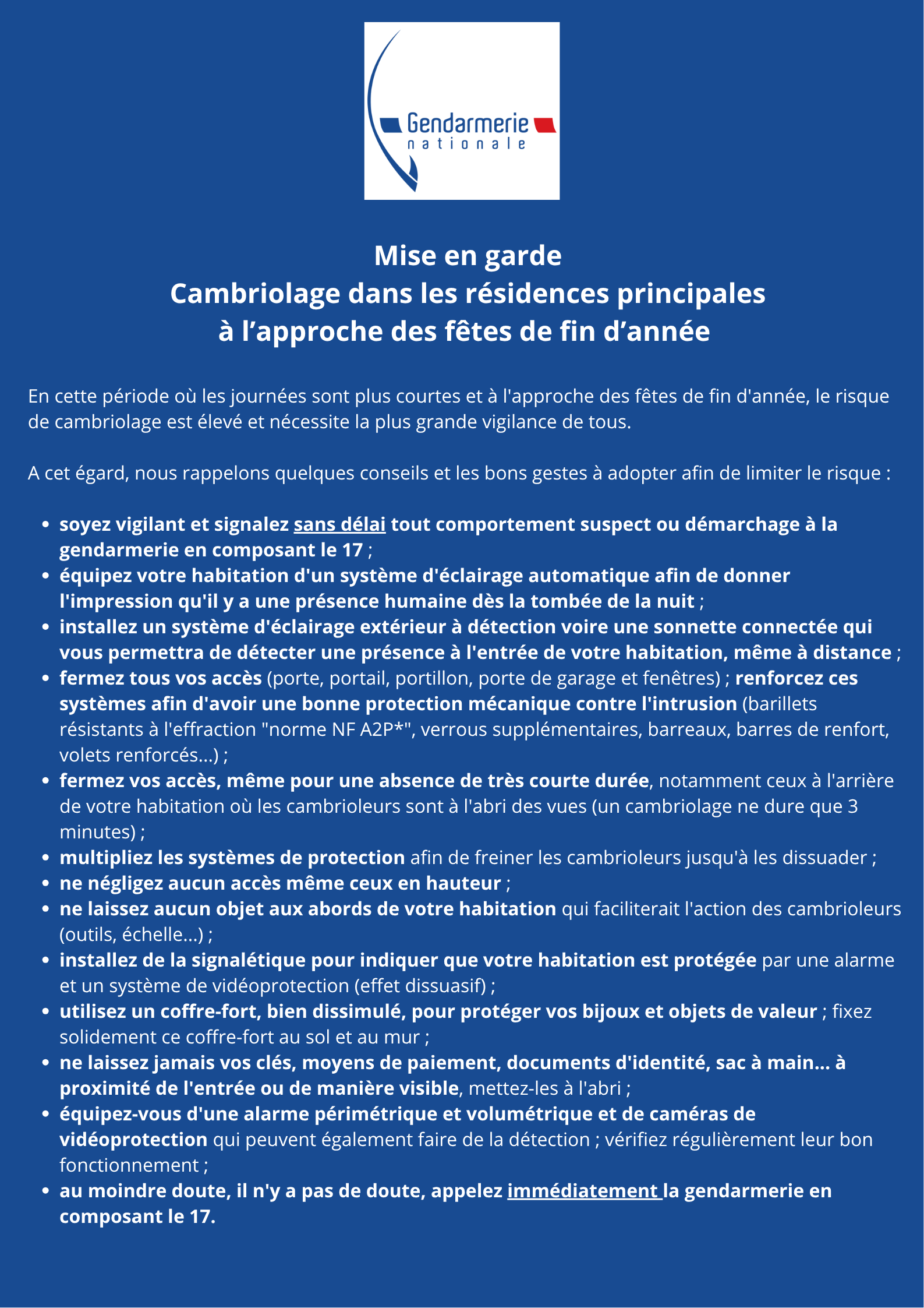 Au moindre doute, il n'y a pas de doute, relevez le maximum d'informations et faites appel à la gendarmerie en composant le 17.