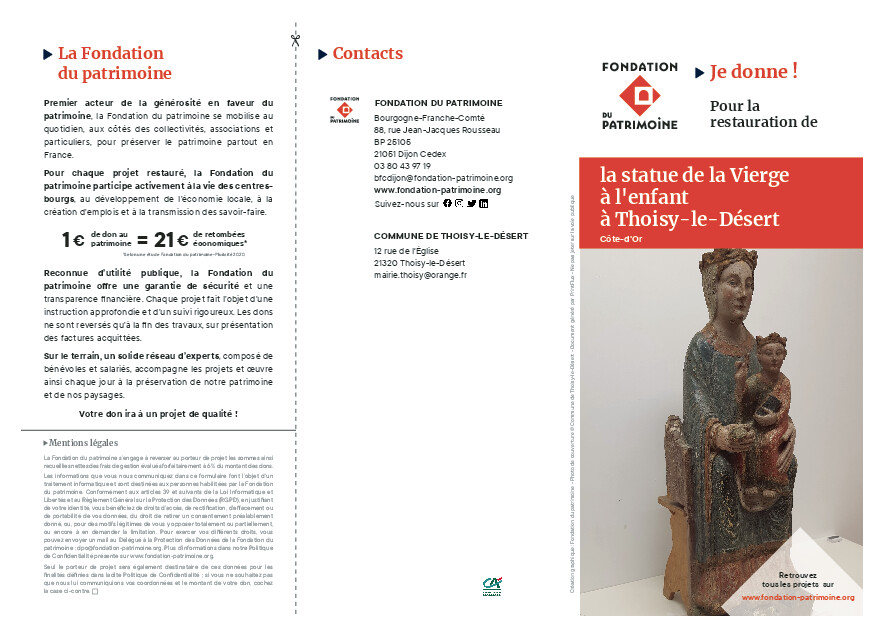Comme vous le savez, nous avons lancé une campagne de dons, pour finaliser la restauration de notre Vierge à l’enfant.