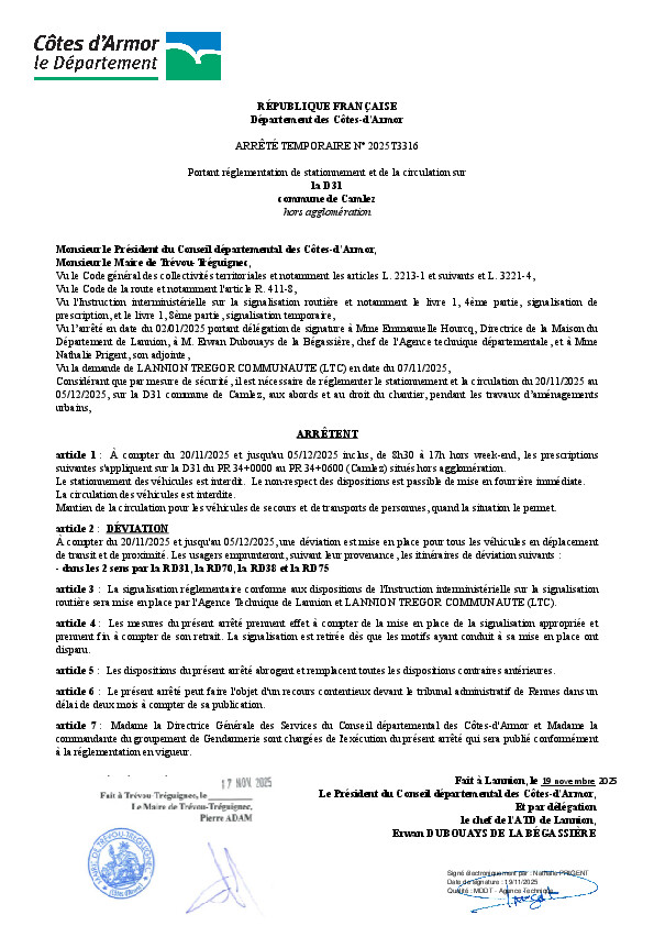 Une déviation est mise en place à compter du 20/11/2025 et jusqu'au 05/12/2025 inclus.