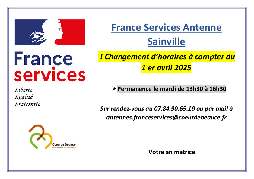 Les permanences France Services, se tiennent uniquement les mardis après-midi, sur rendez-vous de 13h30 à 16h30.
