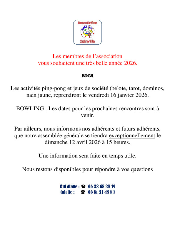 Reprise des permanences le mardi 27 janvier 2026.