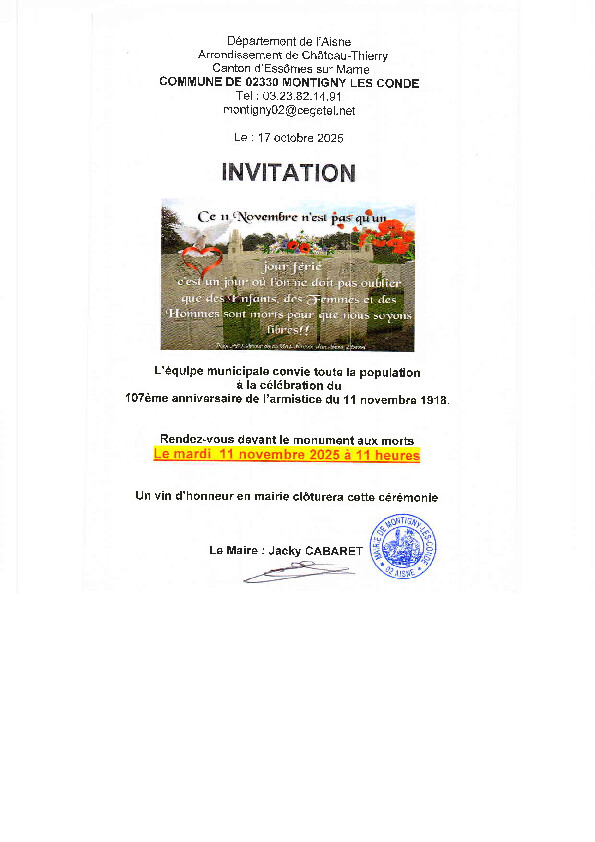 Pour information de tous, voici les termes du mail reçu en mairie de Montigny les Condé concernant le sujet cité en objet