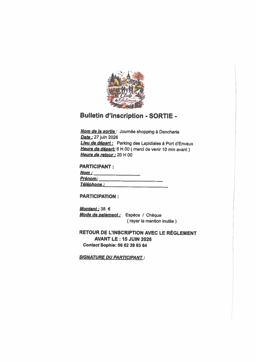 Inscription au 06 85 53 92 43.