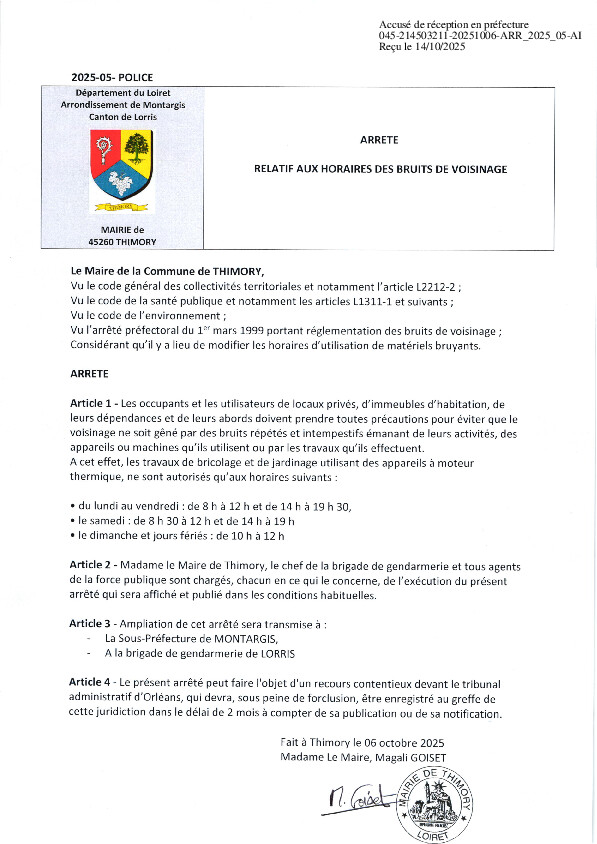 Afin de préserver la tranquillité de tous et de favoriser une bonne qualité de vie dans la commune, nous vous rappelons que les travaux occasionnant du bruit (tondeuses, perceuses, tronçonneuses, etc.) sont soumis à une réglementation précise.