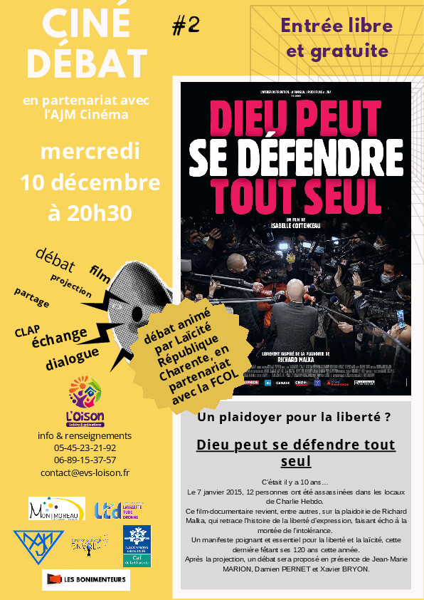 📌 120 ans après la promulgation de la loi de 1905 et 10 ans après les attentats contre Charlie Hebdo, nous vous proposons une soirée inédite autour du film-documentaire "Dieu peut se défendre tout seul".