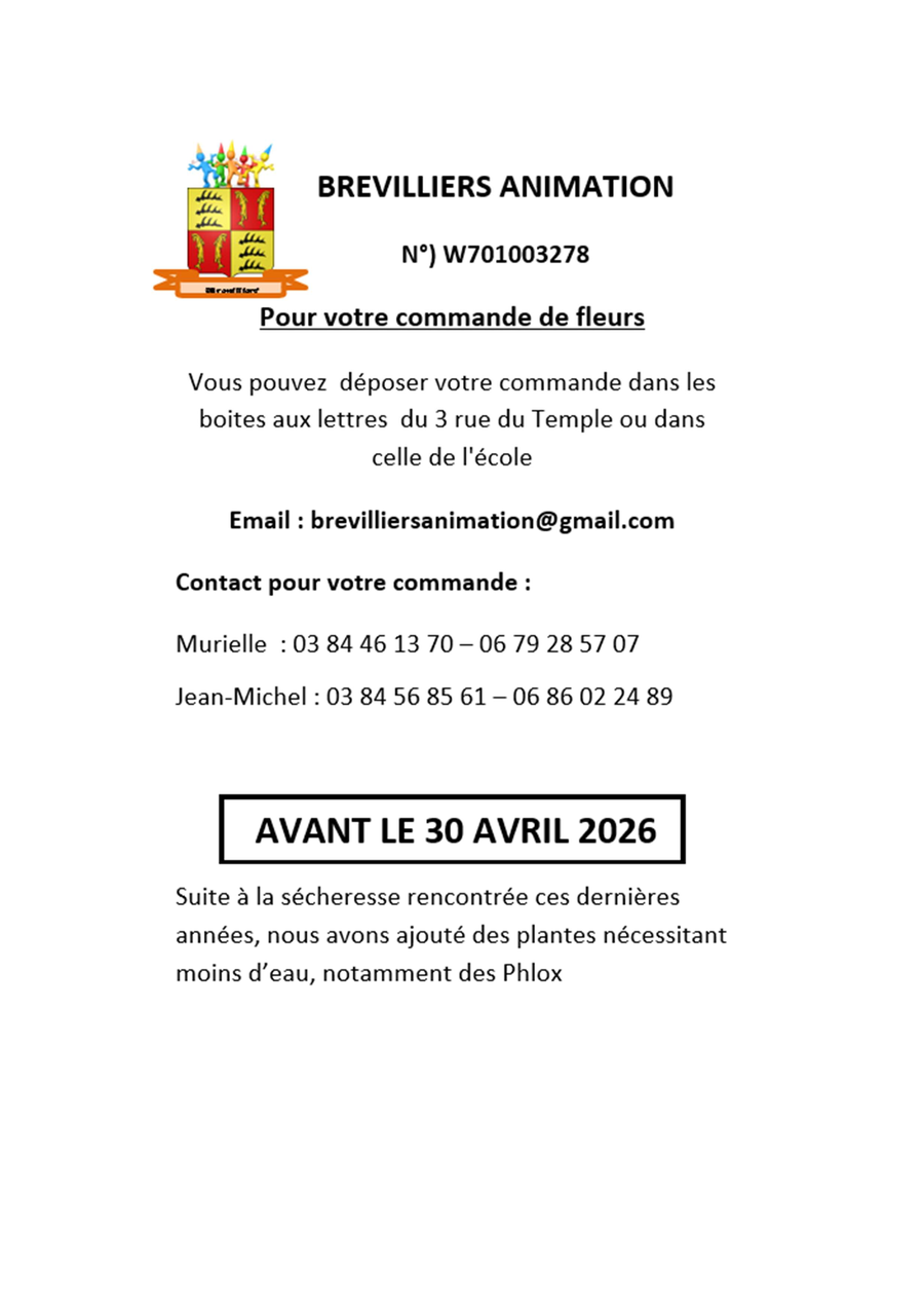 Les commandes sont à retourner à l'association au plus tard le 30 avril 2026