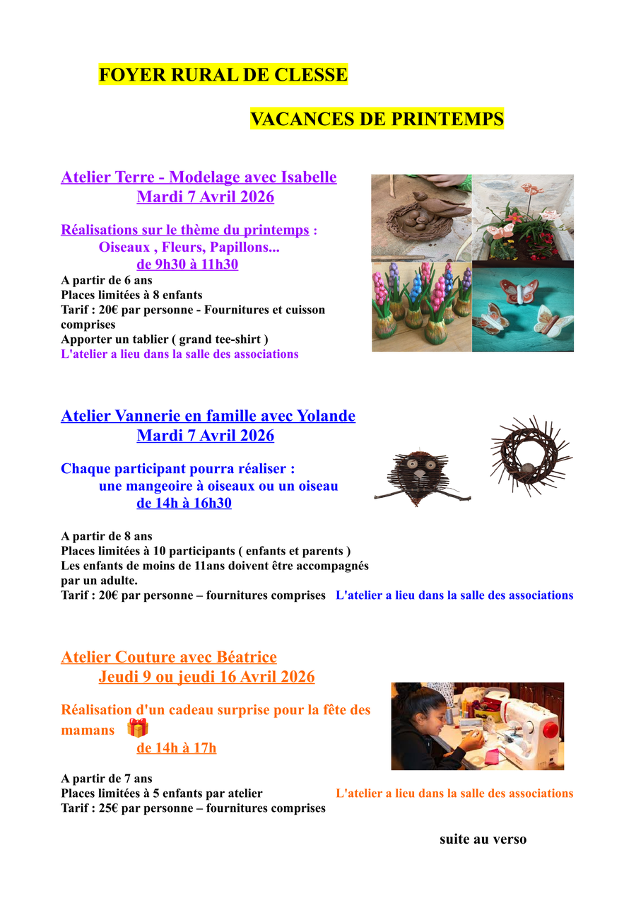 aux dates suivantes :