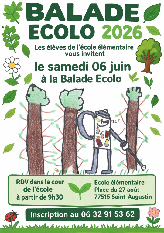 Pour l'édition 2026 de la balade écolo, les enfants de l'école élémentaire de Saint Augustin vous attendent nombreux le samedi 6 juin dés 9h30 dans la cour de leur école !!!