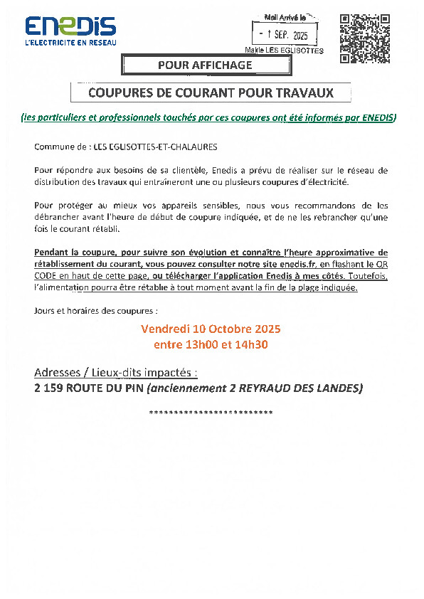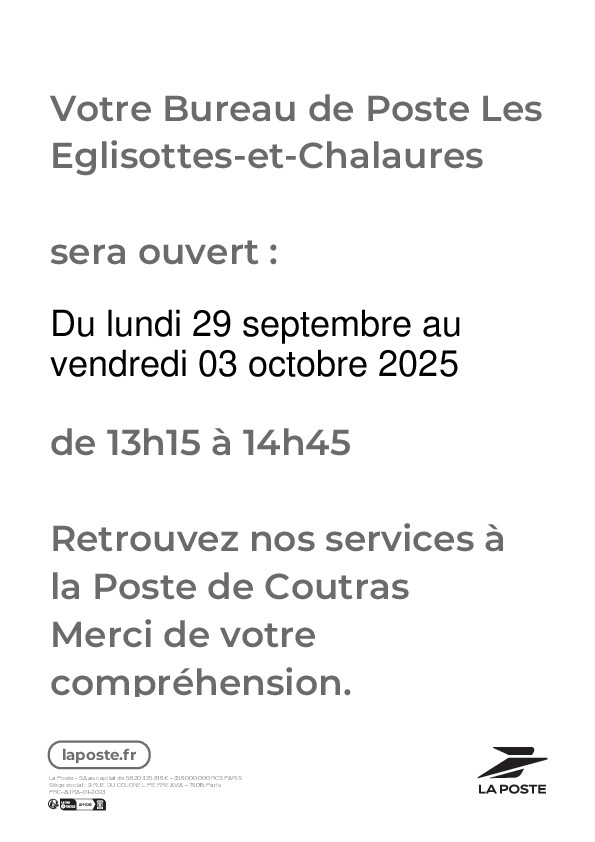 La commune de LES EGLISOTTES ET CHALAURES a été retenue pour accueillir une permanence d'un commissaire enquêteur.