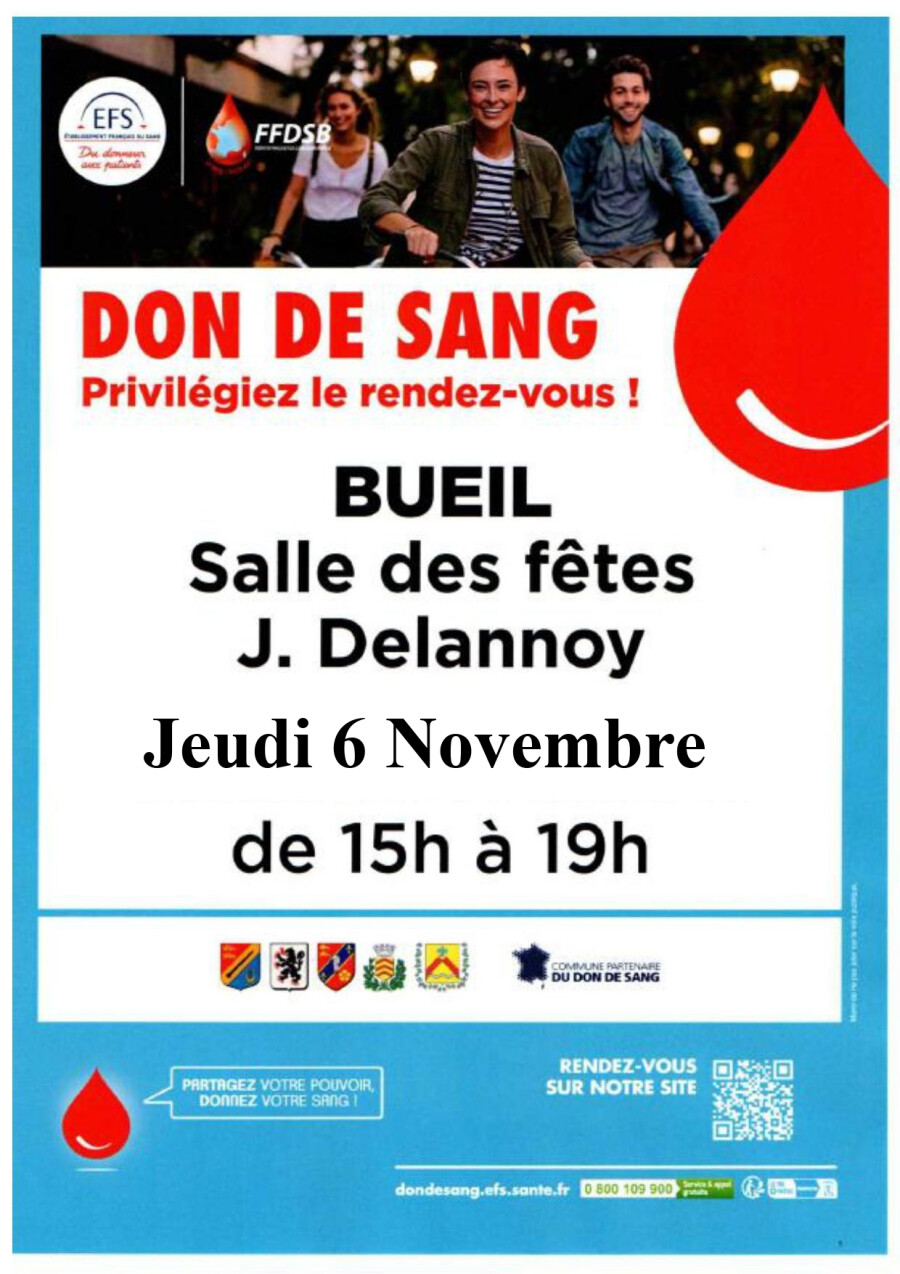 Il est recommandé de privilégier la prise de rendez-vous sur le site de l'Etablissement Français du Sang : dondesang.efs.sante.fr ou via le QR code qui apparaît sur l'affiche.