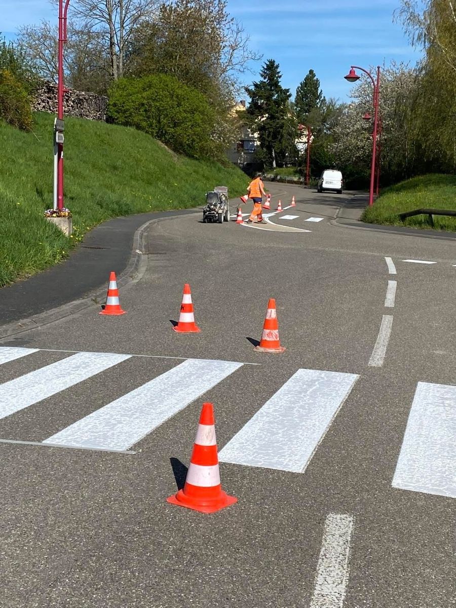 L’entreprise SNH Signalisation reprend actuellement les marquages au sol sur l’ensemble du ban communal.
