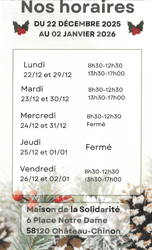 Mercredi 10/12 à 16h00, vendredi 12/12 à 18h00 et mardi 16/12 à 17h30