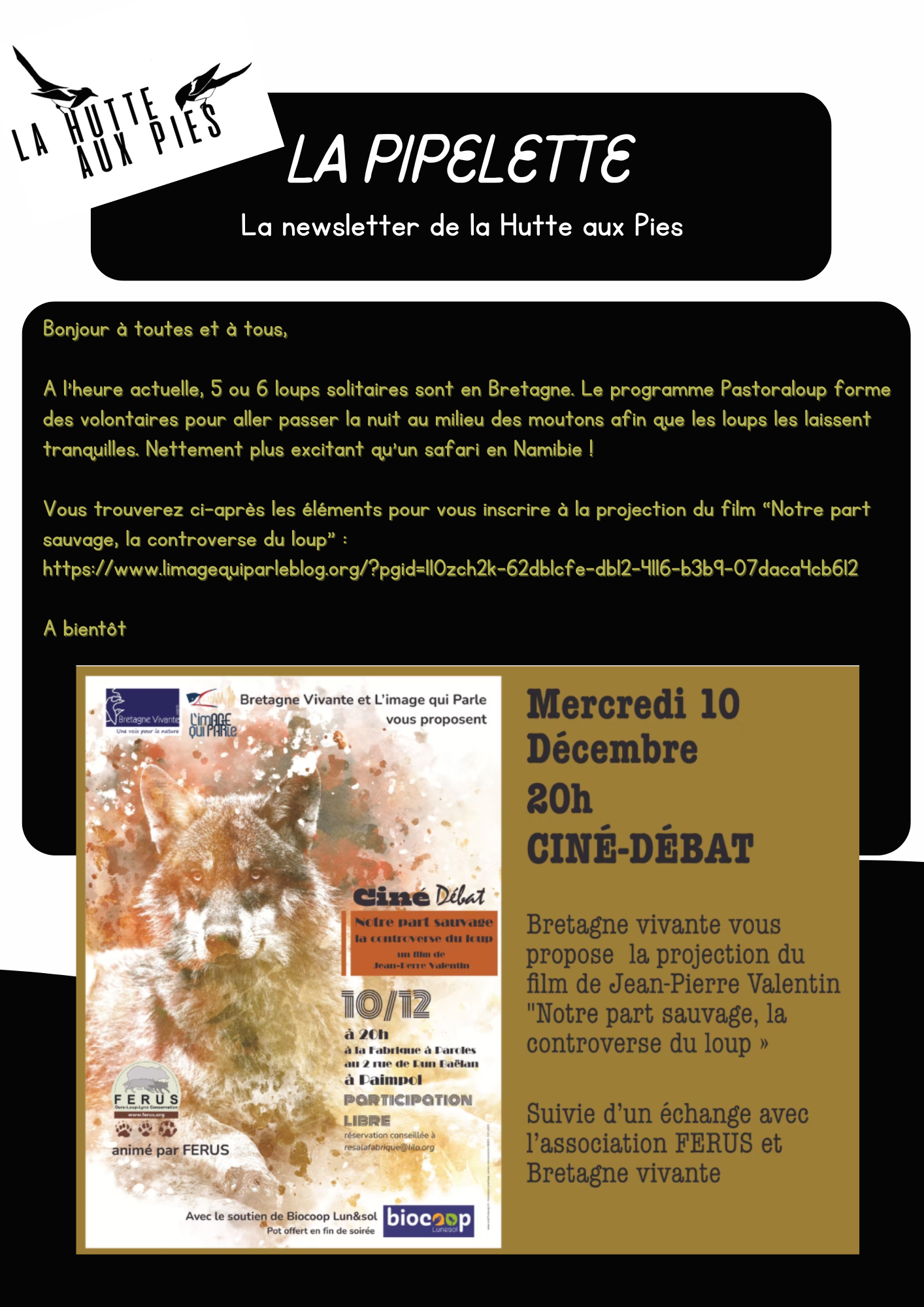 Nous allons proposer des animations en décembre tel qu'un atelier dans le bois de Penhoat et création de décos de Noël. Nous serons également présents au chalet des associations le 21 Décembre sur la Place de la République.