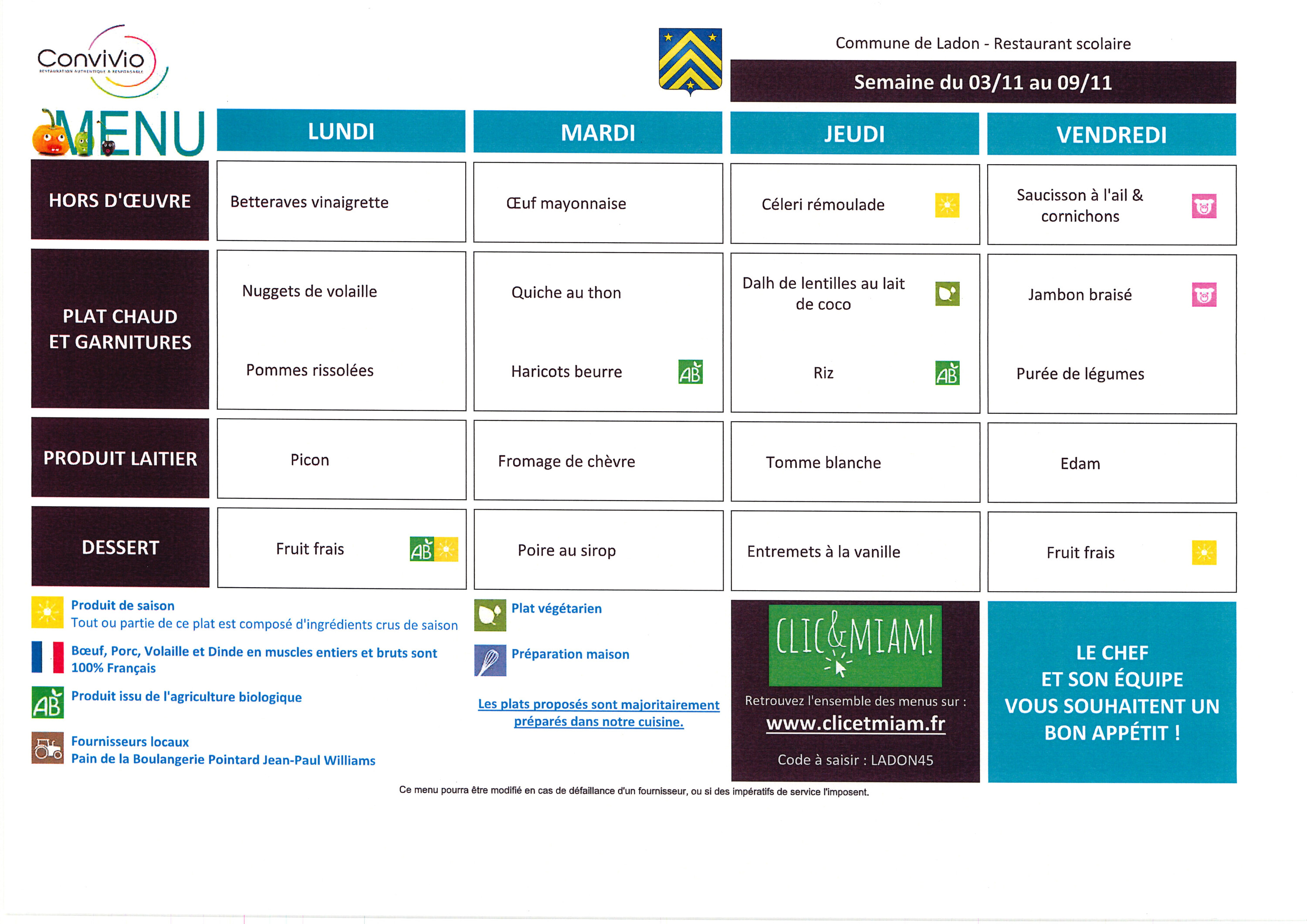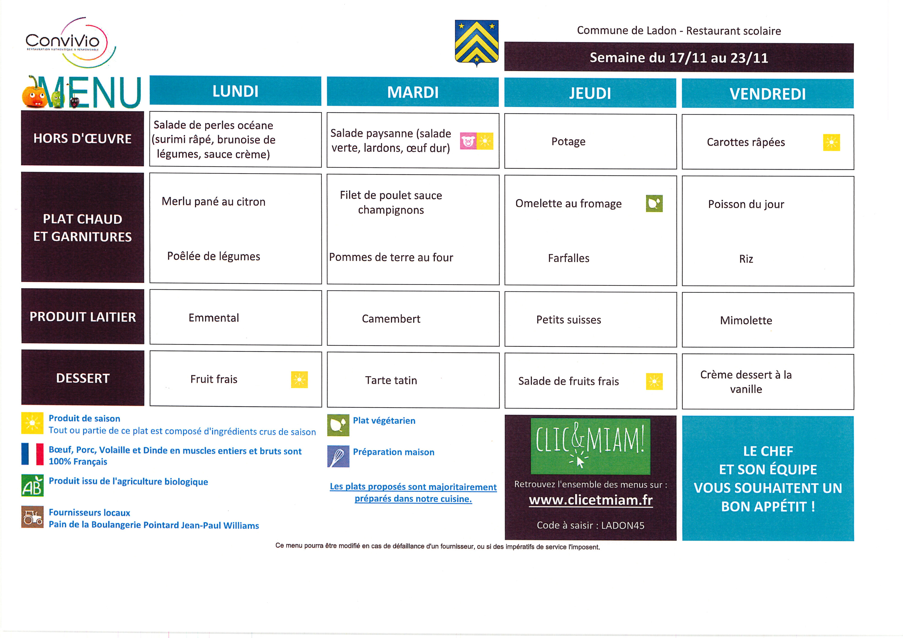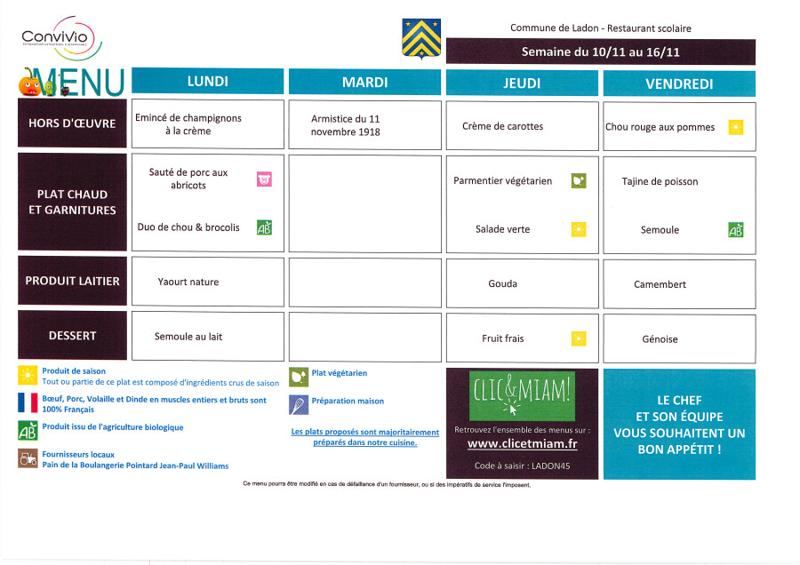 Veuillez trouver ci-dessous les menus du restaurant scolaire pour le mois de novembre.