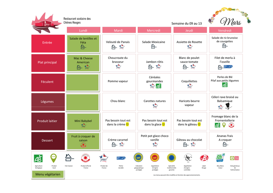 MENU DU 09/03 AU 13/03