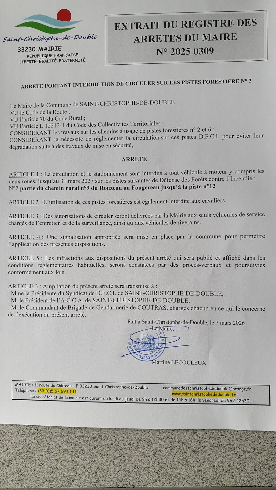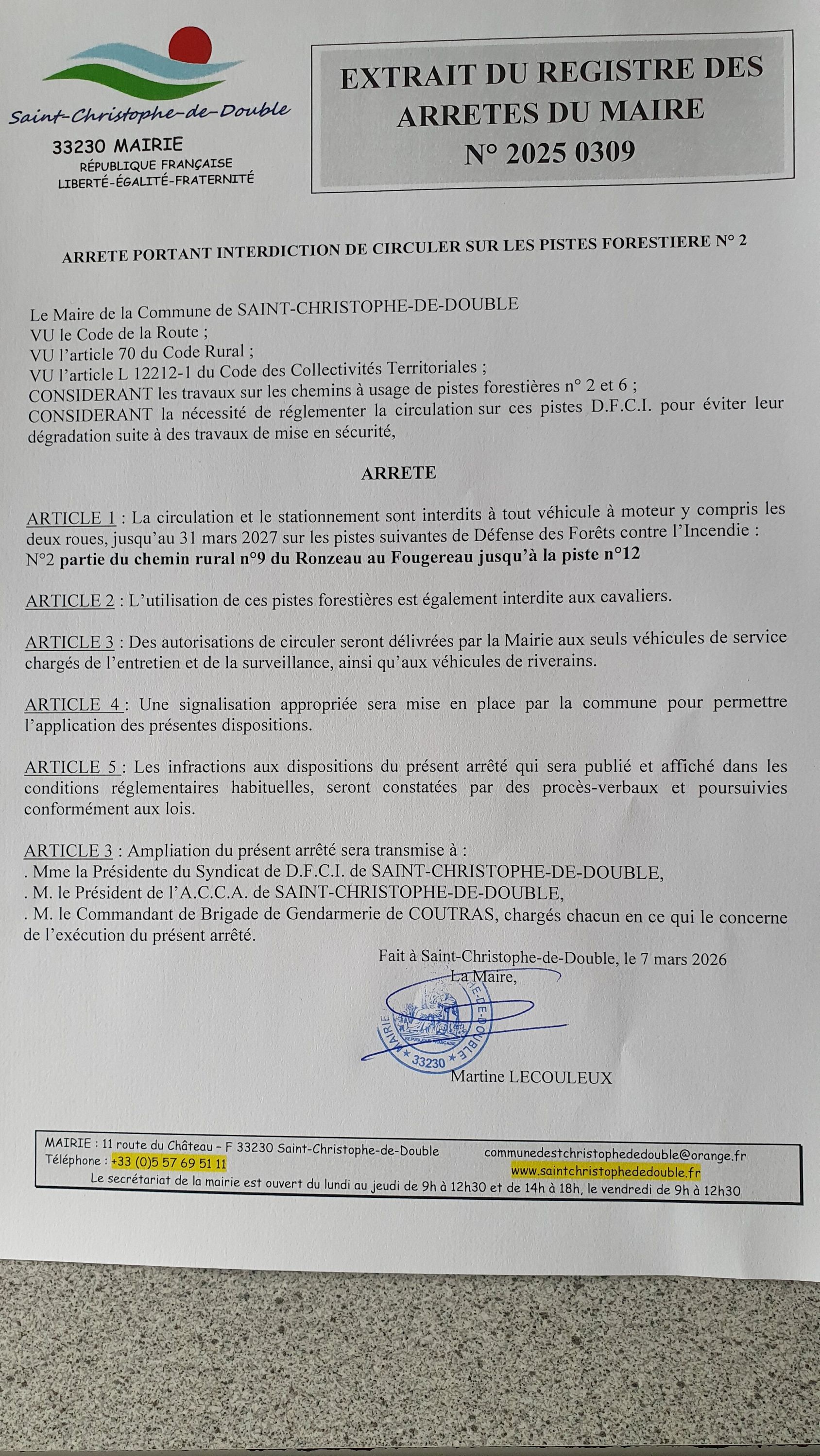 La commune de ST Christophe de Double et la DFCI vous remercient pour votre compréhension et votre coopération pour la préservation et l’amélioration de notre environnement forestier 🌳
