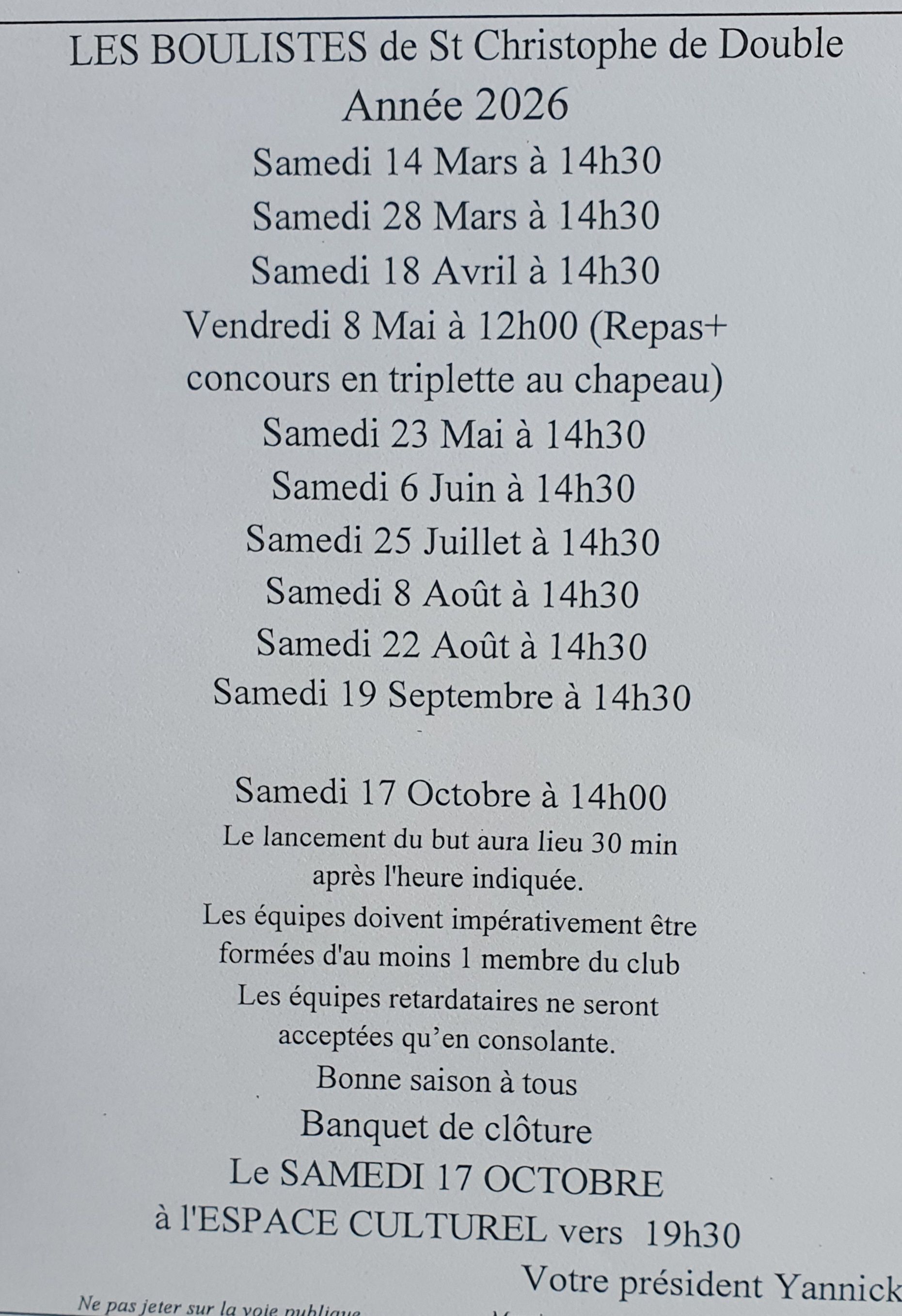 Le calendrier 2026 a été distribué.