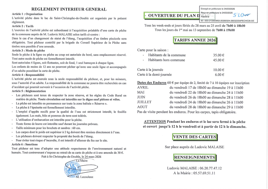 La vente des cartes de pêche au lac sera assurée cette saison 2026