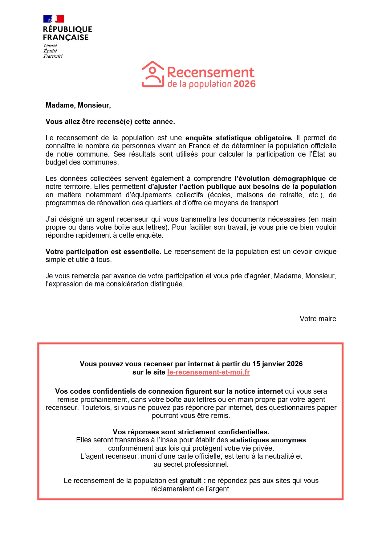 🏡 À Sailly-Lez-Cambrai, le recensement 2026 démarre le 15 janvier !