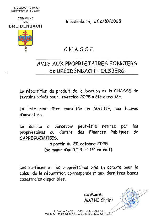 Pour les intéressés, merci de vous manifester en mairie avant le 01/11/2025