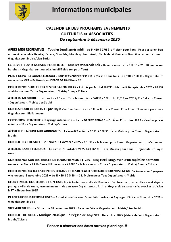 Contact au sein de la collectivité : secrétariat mairie@goyrans.fr