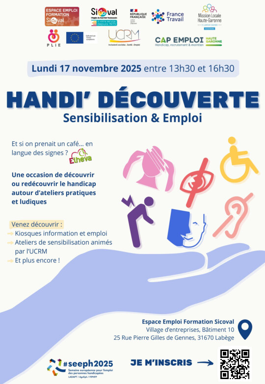 Cette action se déroulera dans le cadre de la Semaine Européenne pour l’Emploi des Personnes Handicapées et aura lieu dans les locaux de l’Espace Emploi Formation du Sicoval :