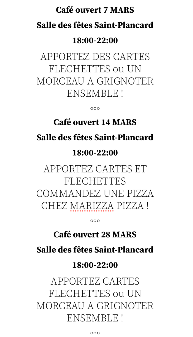 Les prochains samedis