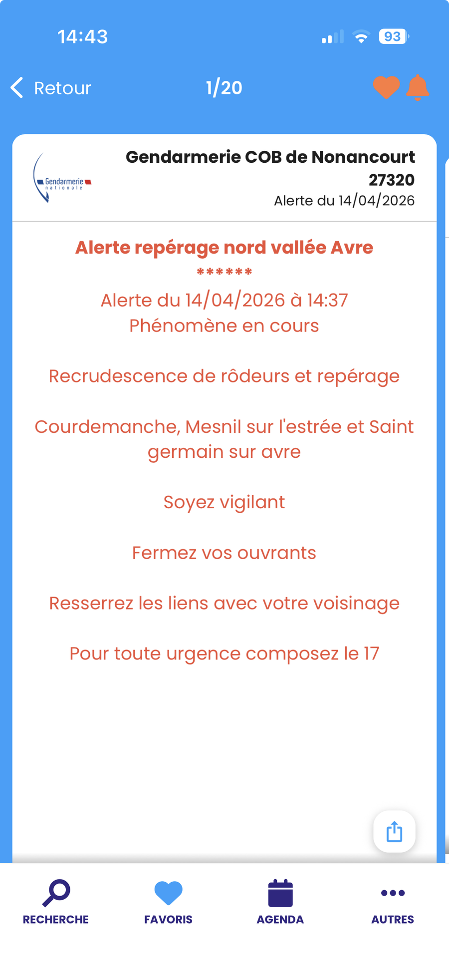Alerte diffusée par la Gendarmerie Nationale de Nonancourt