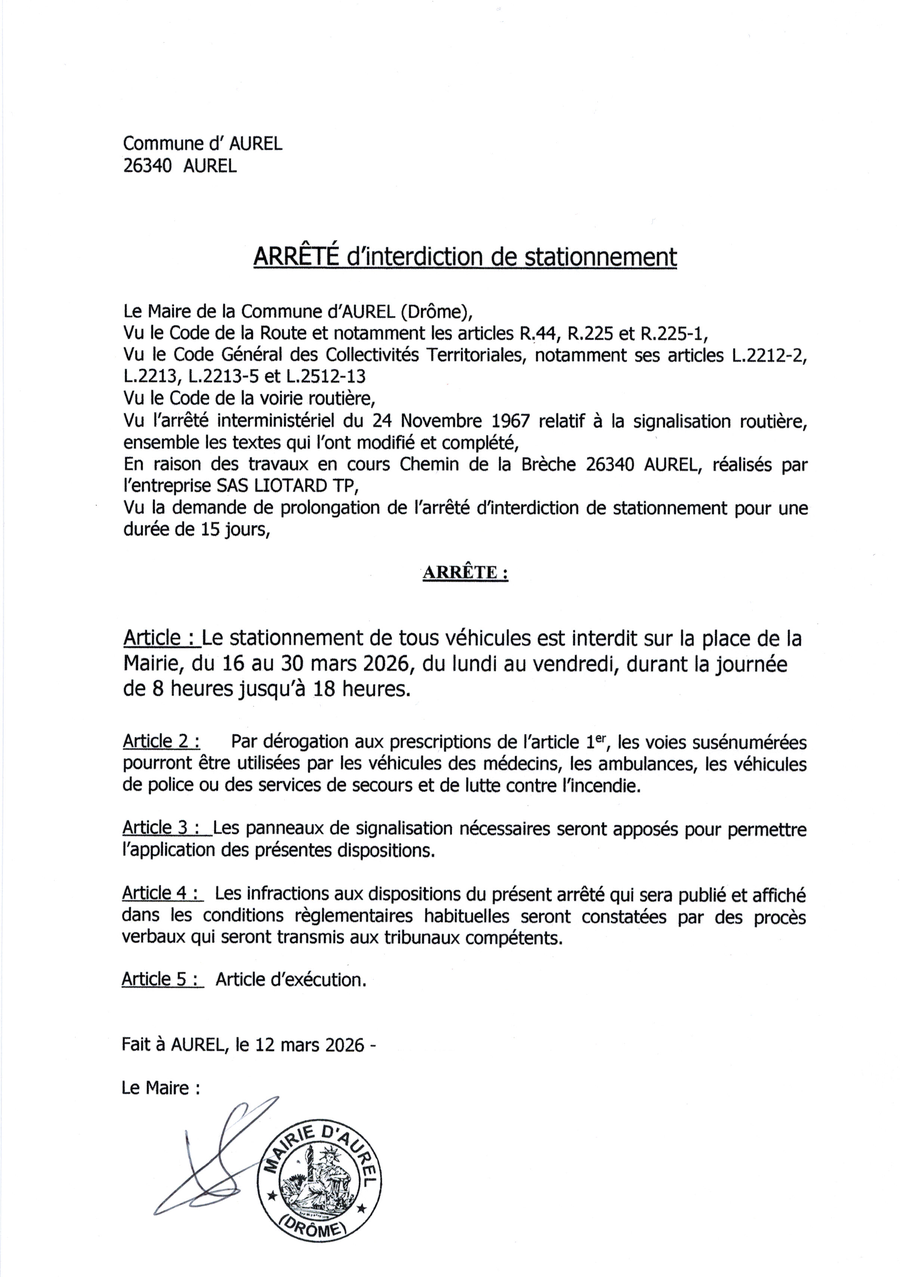 PROLONGATION de l'arrêté d'interdiction de stationnement