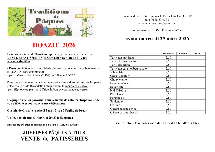Commande des petits gâteaux